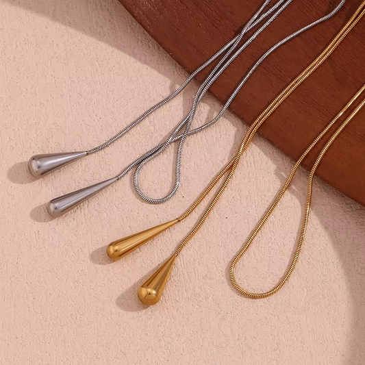Liquid Drop Lariat Necklace Gold & Silver Tone Options | Modern Luxe Jewellery