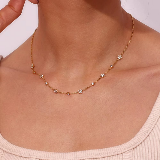 Crystal Bloom Station Necklace Gold-Tone Finish | Refined Floral Jewellery