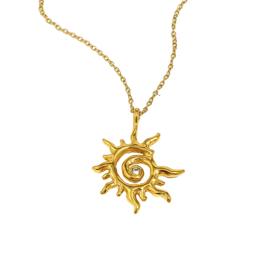 Sunshine Solar Spiral Pendant Necklace Gold-Tone Finish | Luxe Celestial Jewellery